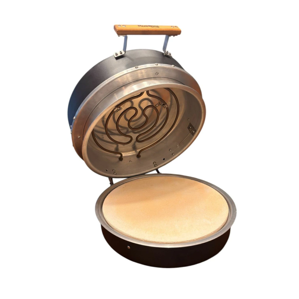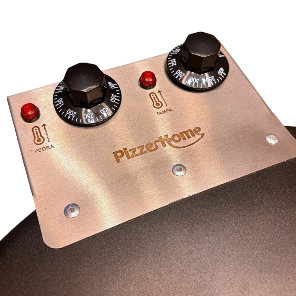 Controle de temperatura e pedra refratária cordierita (a mesma pedra usada nos fornos a lenha das pizzarias) para manter a temperatura constante e assar a suas pizzas com sucesso! Não precisa fornear ou girar a sua pizza, basta fechar a tampa e depois de até 180 segundos retirar a pizza.